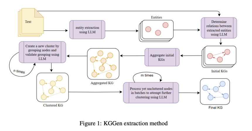 „Kggen“: žinių grafiko ištraukimo tobulinimas naudojant kalbų modelius ir klasterių metodus