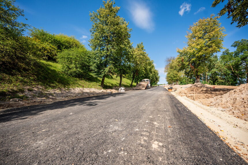 Važiuojamojoje kelio dalyje nufrezavus stipriai susidėvėjusią asfalto dangą ir takus beveik paklota lietaus nuvedimo trasa, įpusėta įrengti drenažo sistemą.